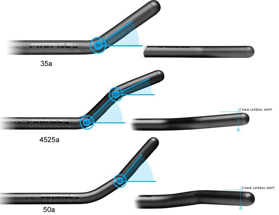 ●35a:ニュートラルレンジより低い手首の角度を好むライダーに適した35°のスキーベント ●4525a:手前は45°グリップ部分は25°、左右に7.5mmシフトされたデュアルベントグリップで、複数のハンドポジションが可能 ●50a:7.5mm横方向にシフトされたデザインの50°スキーベント。