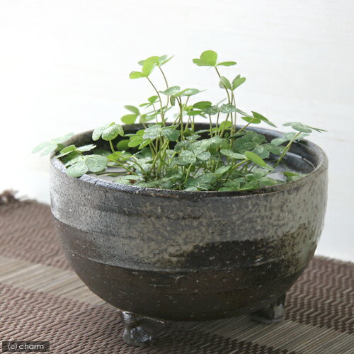 私の小さなアクアリウム〜シャリッと益子 DE 幸せムチカセット (足付深丼 炭化)〜輝くようなクリスタルストーンと、幸せを運んでくれる四葉のウォータークローバー・ムチカの絶妙コラボ!可愛らしい斑入りの四葉が大人気のウォータークローバー・ムチカが、味わい深い益子焼の器とセットになりました。