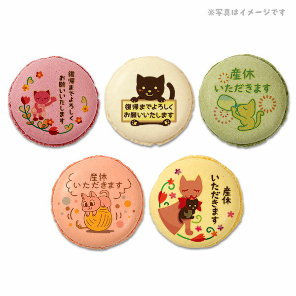 産休 お菓子 あいさつ 人気の5つのフレーバーで美味しい ネコのイラスト メッセージマカロン 10個セット 手作り スイーツ ギフト